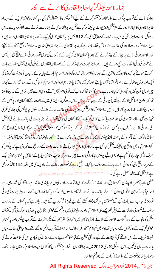 Plane Land In Lahore Qadri Refuse To Left Plane
