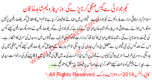 Gas Rate Would Be Increased 1st July Shahid Khaqan