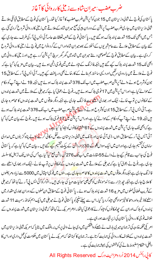 Ground Offensive Launched From Miranshah Zarb E Azb