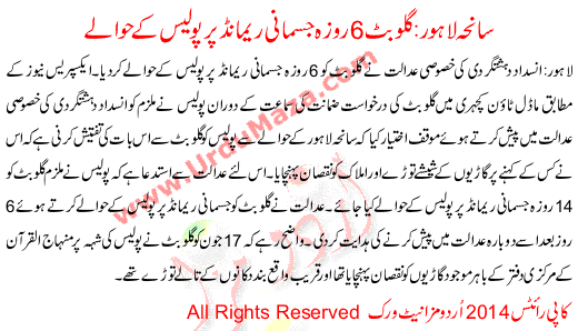 Lahore Tragedy Gulu Butt On A Six-day Police Remand