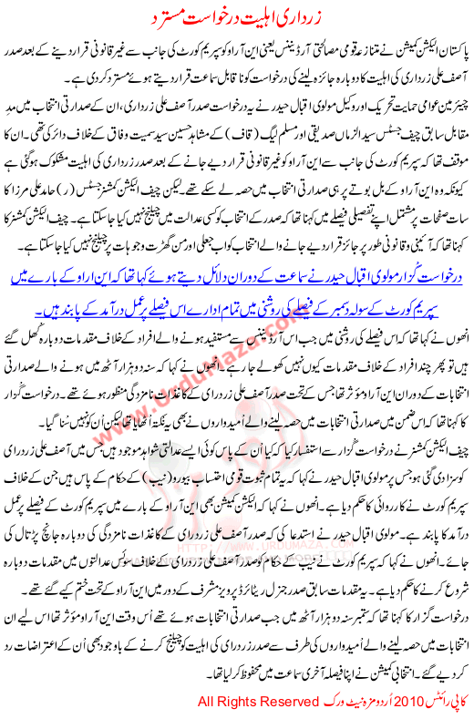 Court Rejected An Application Against Zardari Eligibility