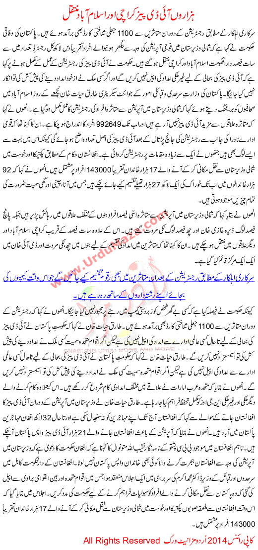 Thousands Of Idps Transfer To Islamabad & Karachi