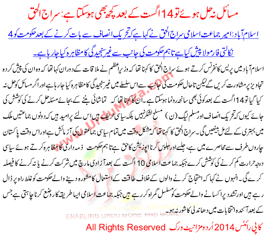 If Problems Not Sloved Anything Can Happen After August 14 Siraj Ul Haq
