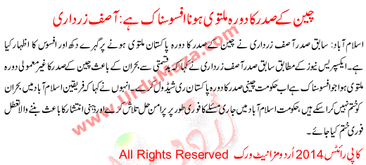 Chinese President's Visit To Postpone The Tragic Asif Zardari
