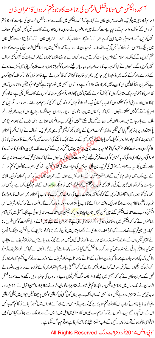 Maulana Fazlur Rehman's Party In The Next Election Will Cease To Exist Imran Khan