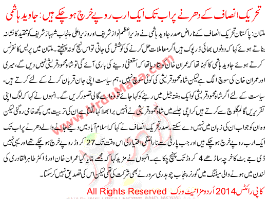 Pti K Dharne Per Ab Tak 1 Arab Rupees Kharch Ho Chuke Hai Jawed Hashmi