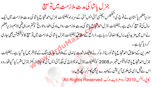 General Pasha Ki Mudat E Mulazmat Ma Tosea