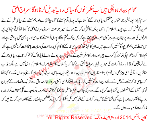 The People Has Been Awakened Ruler Political Attitude Must Change Siraj Ul Haq