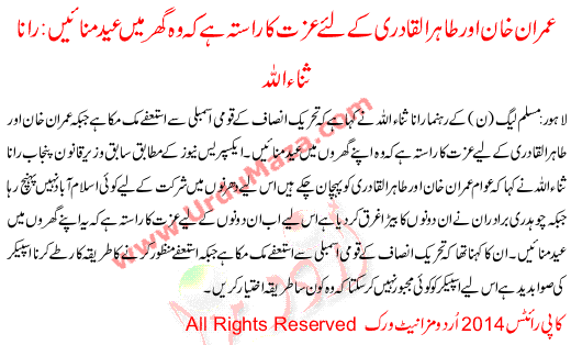 Imran Khan And Qadri's Honor Is The Way They Celebrate Eid At Home Rana Sanaullah