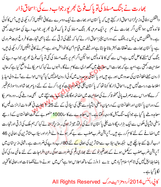 If India Impose War Than Pak Army Will Retaliate Ishaq Daar