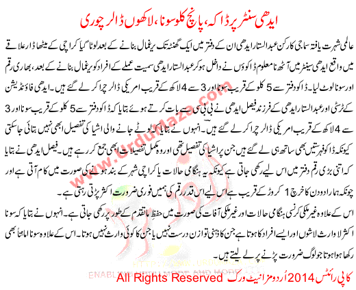 Edhi Centre Robbed Five Kg Gold And Millions Of Dollars Stolen