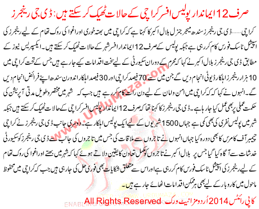 Only 12 Honest Police Officer Can Be Handle The Situations In Karachi Dg Rangers