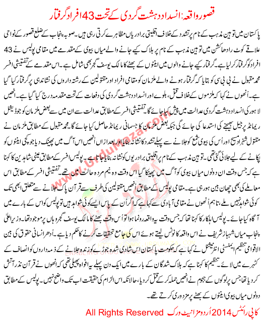 43 Arrested Under Anti-terrorism Qasoor Incident