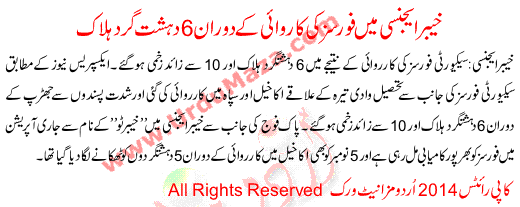 6 Terrorists Killed During The Forces Operation In Khyber Agency