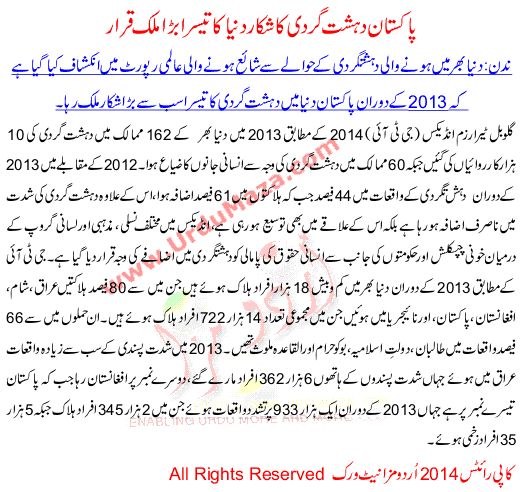 Pakistan Nominate World 3rd Terrorist Country
