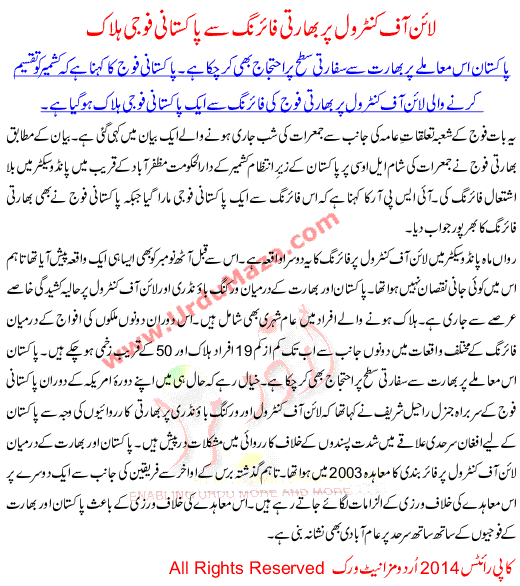 Pakistani Soldier Killed By Indian Firing At Lion Of Controle