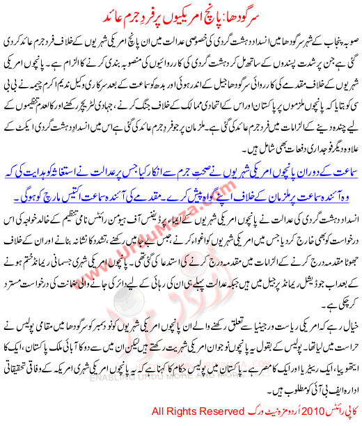 Sargodha 5 Amrikion Pr Fard Jurm Aide