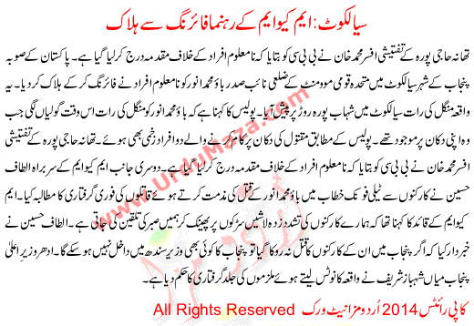 Mqm Leader Gunned Down Sialkot
