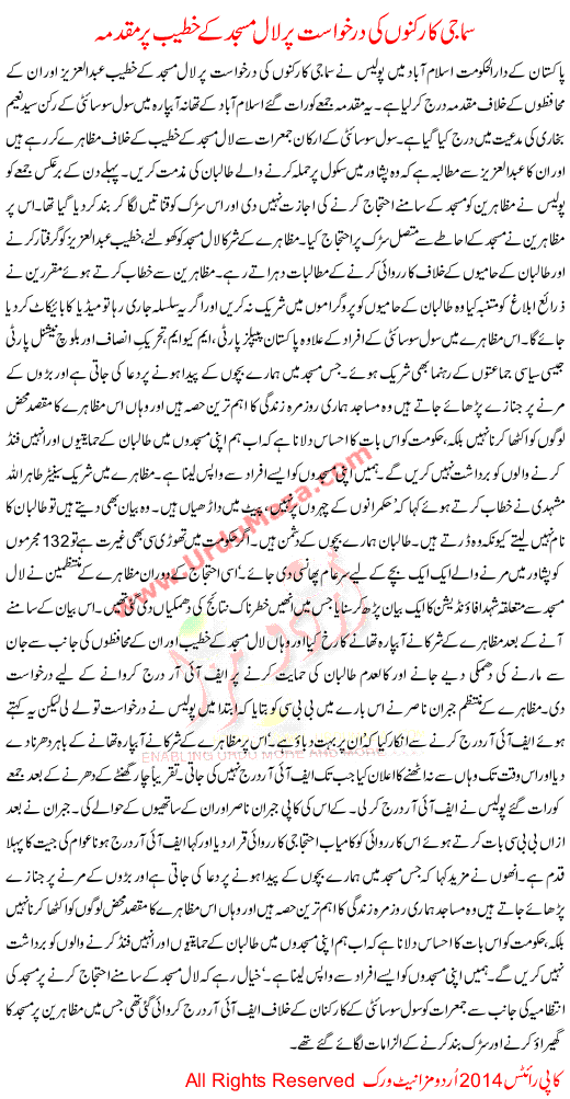 Request Of Social Workers Sue On Red Mosque Kahteeb