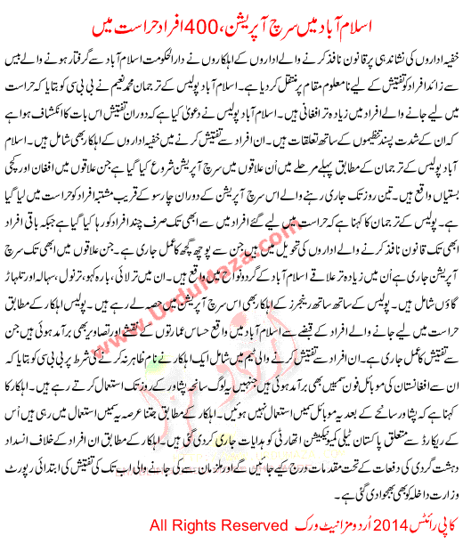 Search Operation In Islamabad 400 Arrested
