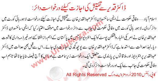 Doctor Qadeer Sa Tafteesh Ki Ijazat K Liay