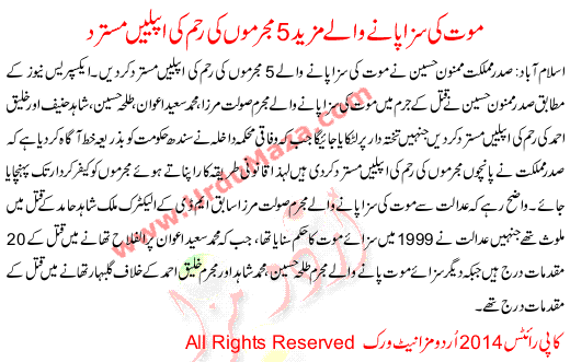 5 Criminals Condemned To Death Mercy Appeal Rejected