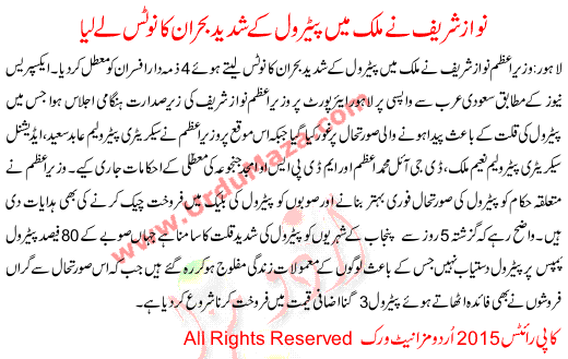 Nawaz Sharif Took Notice For Shortage Petrol In Country