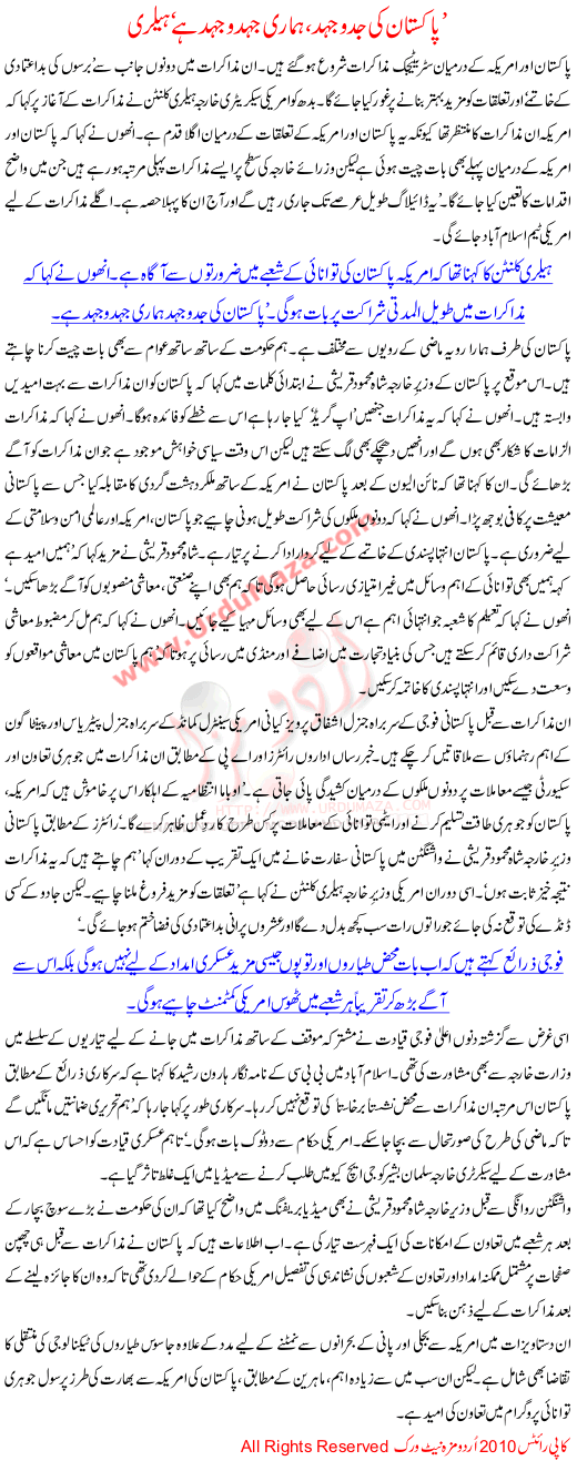 Struggle Of Pakistan Is Our Struggle Says Hilary Clinton