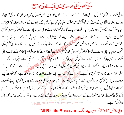 Zaki Lakhvi Detention Extended By One Month