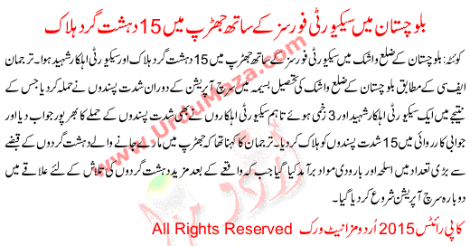 Balochistan Security Forces Killed 15 Terrorists In Clash