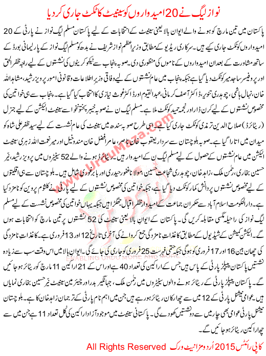 Nawaz League Issued 20 Senate Tickets For Candidates