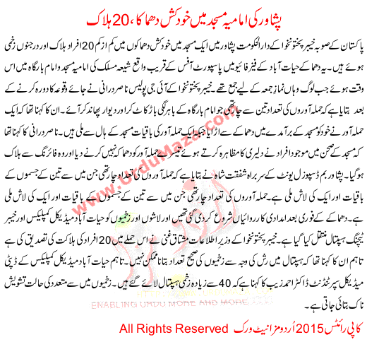Suicide Blast In Imamia Mosque Peshawar 20 Killed