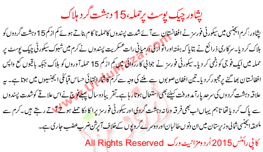 15 Militants Killed In Peshawar Check Post Attack