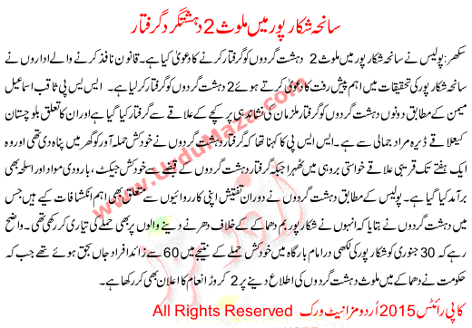 2 Terrorists Arrested Involved In Shikarpur Incident