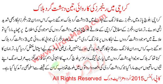 Three Killed In Karachi Rangers Operation