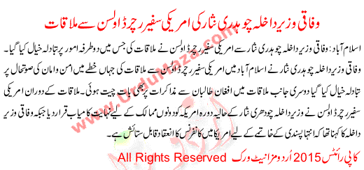 Interior Minister Chaudhry Nisar Met Us Ambassador Richard Olson