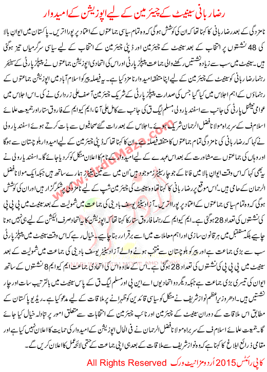 Raza Rabbani, Chairman Of The Senate Candidate Of The Opposition