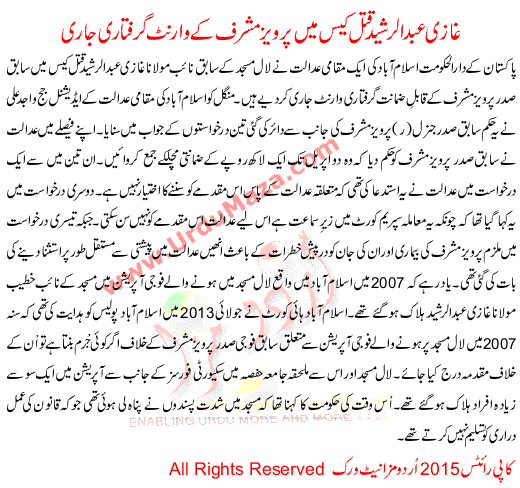 Abdul Rashid Ghazi Murder Case Issued Arrest Warrants For Pervez Musharraf
