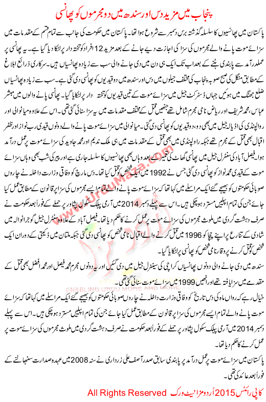 Ten Criminals Hanging In Punjab And Two In Sindh