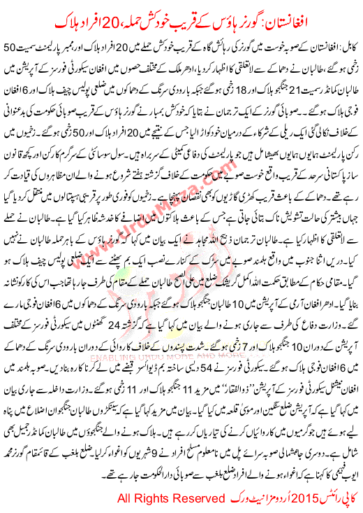 Afghanistan Suicide Attack Near Governor House 20 People Killed