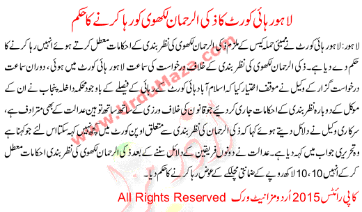 Lahore High Court Ordered To Release Zaki Ur Rehman Lakhvi