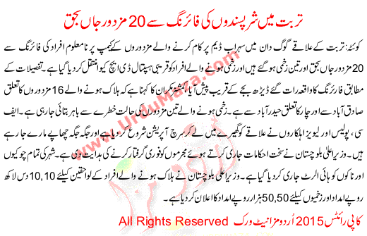 By Firing Of Miscreants Killed 20 Workers In Turbat