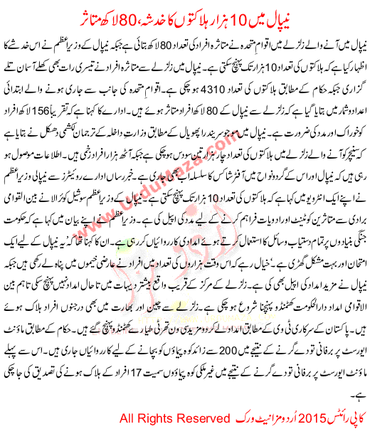10 Thousand Deaths Feared In Nepal 80 Million Affected