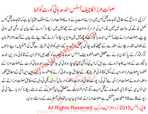 Solat Mirza Letter To The Chief Justice Of Sindh High Court