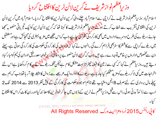 Prime Minister Nawaz Sharif Inaugurated The Green Train