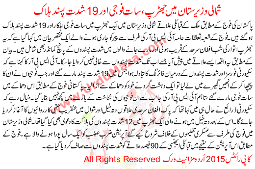 Clash In North Waziristan Seven Soldiers And 19 Militants Killed