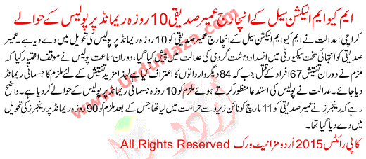 Umair Siddiqui Cell Charge Of Mqm 10 Days Police Remand