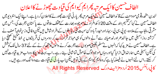 Altaf Hussain Announced Resigned From The Mqm Leadership Once Again