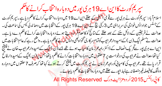 The Supreme Court Ordered To Re-polling In N A 19 Haripur