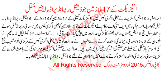 17 Exect Employees Transferred To Adiala Jail On Judicial Remand